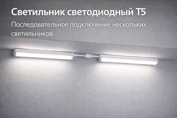 Одной из важных особенностей светодиодных светильников Т5 является возможность последовательного подключения сразу нескольких изделий в одну сеть. Это достигается за счёт использования специальных шнуров-соединителей, которые позволяют передавать питание от одного светильника к другому.